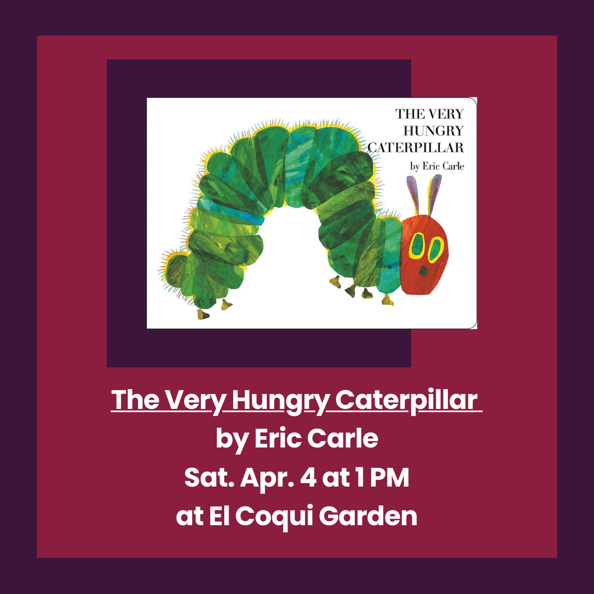 The Very Hungry Caterpillar by Eric Carle (Sat. Apr. 4 at 1 PM)